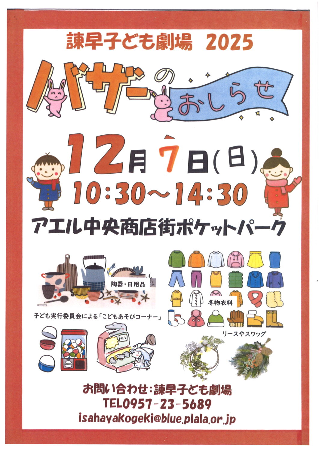 アエル中央商店街ほんまちポケットパークにて、諌早子ども劇場さんがバザーを開催され […]
